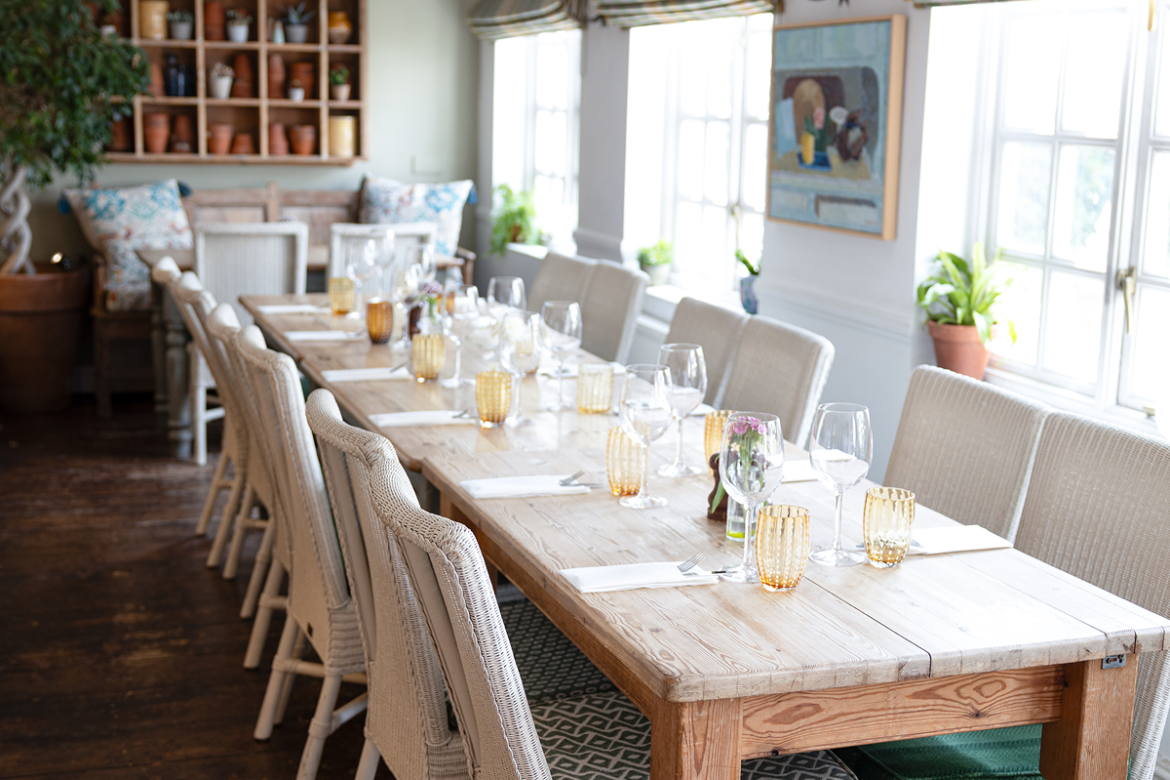 The Garden Room (up to 22 guests) and the Restaurant for exclusive use (up to 55 guests).